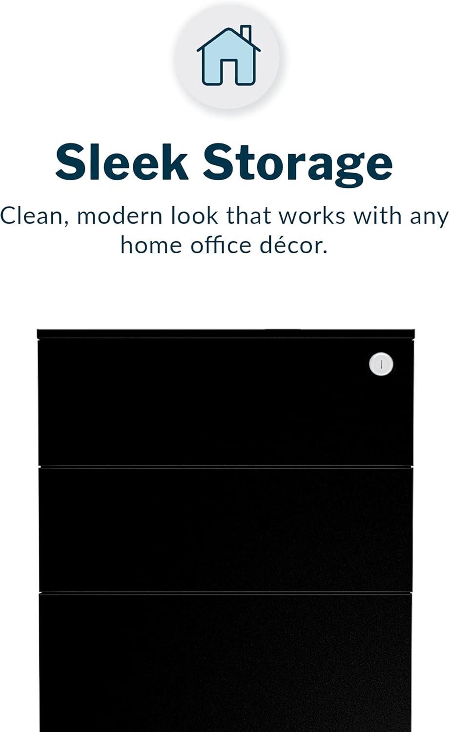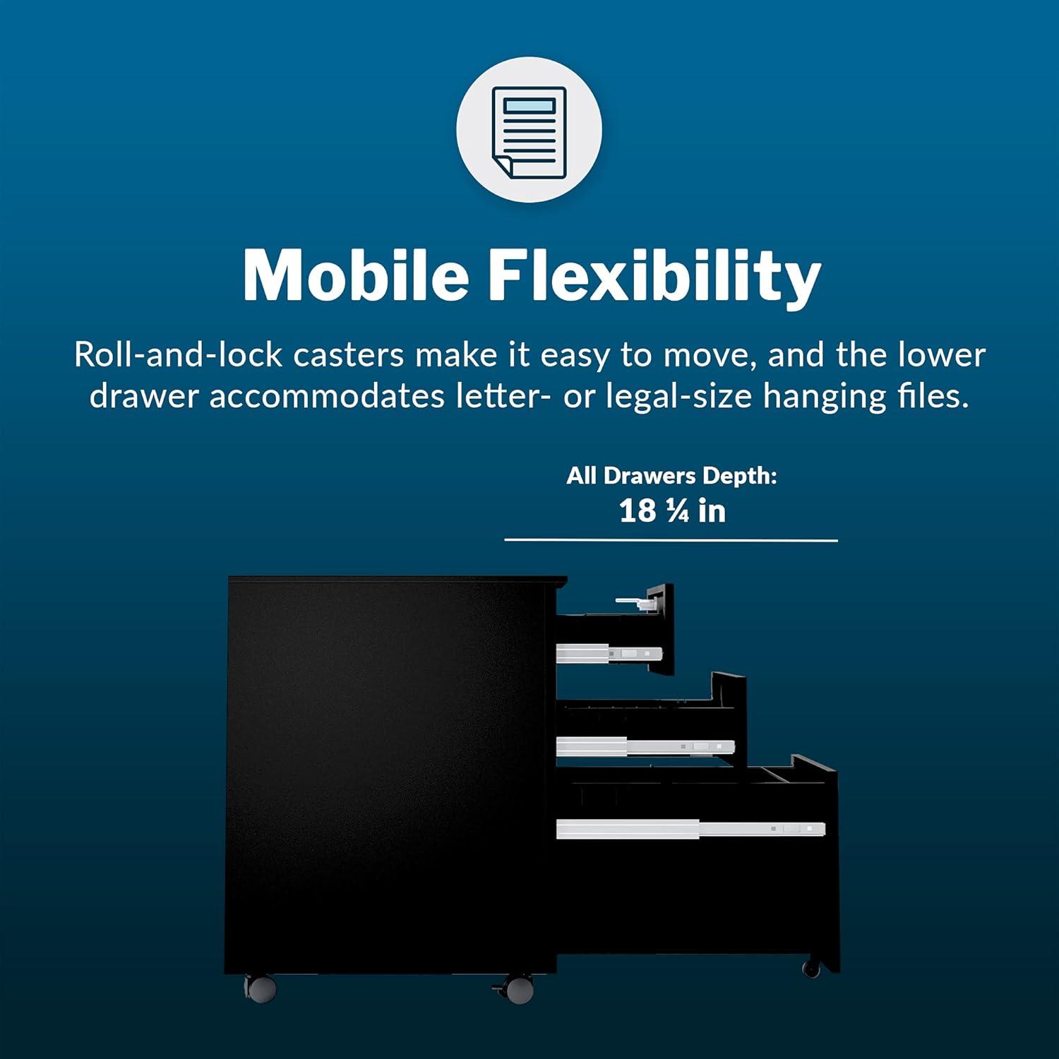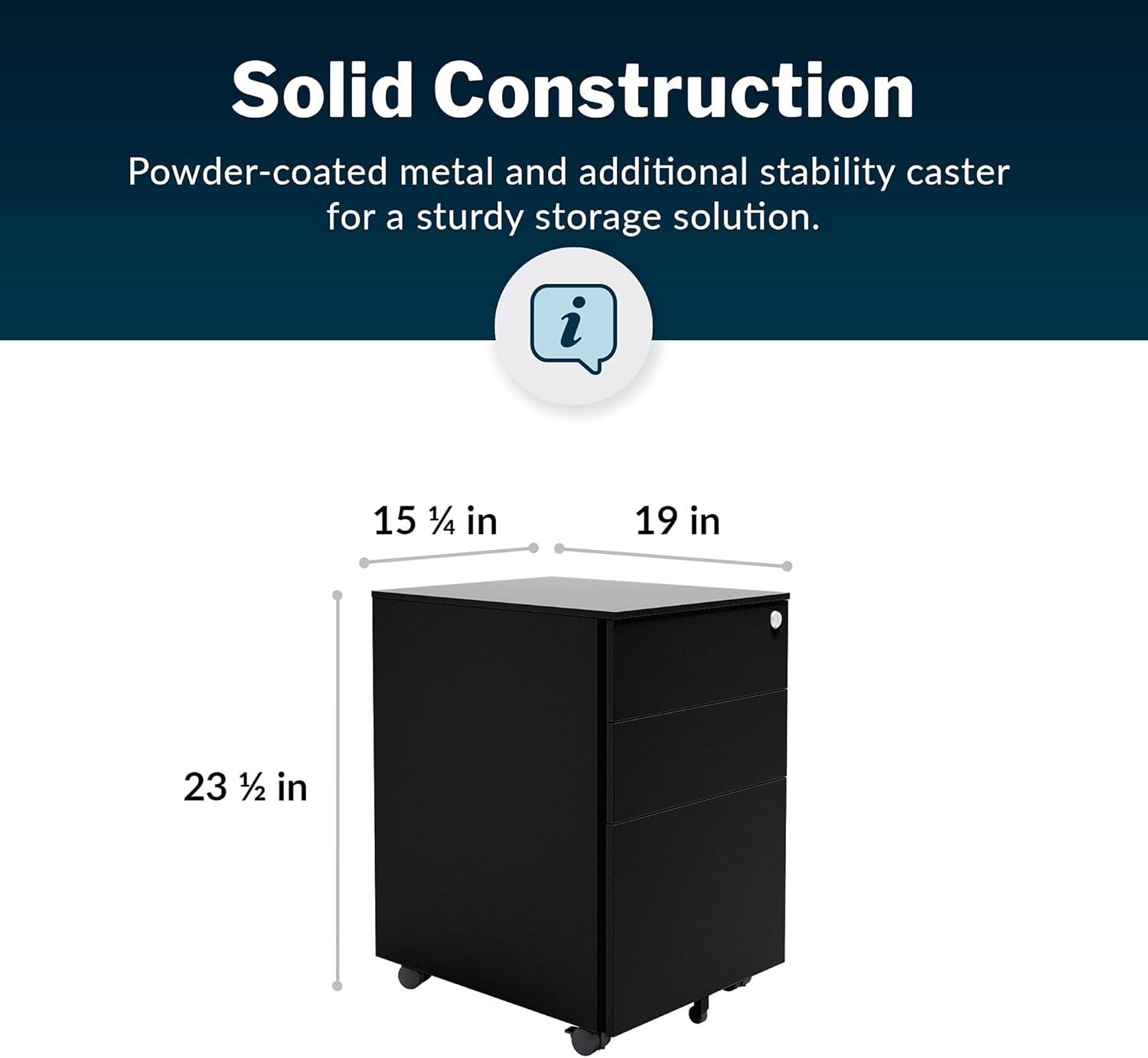 Vari Essential File Cabinet – Home Office Filing Cabinet with Three Drawers for Storage – Metal Storage Cabinet with Roll-and-Lock Caster Wheels & Lockable Top Drawer – Fully Assembled (Black)(Black)