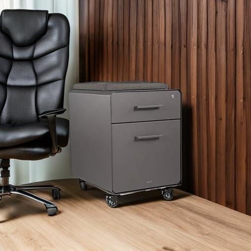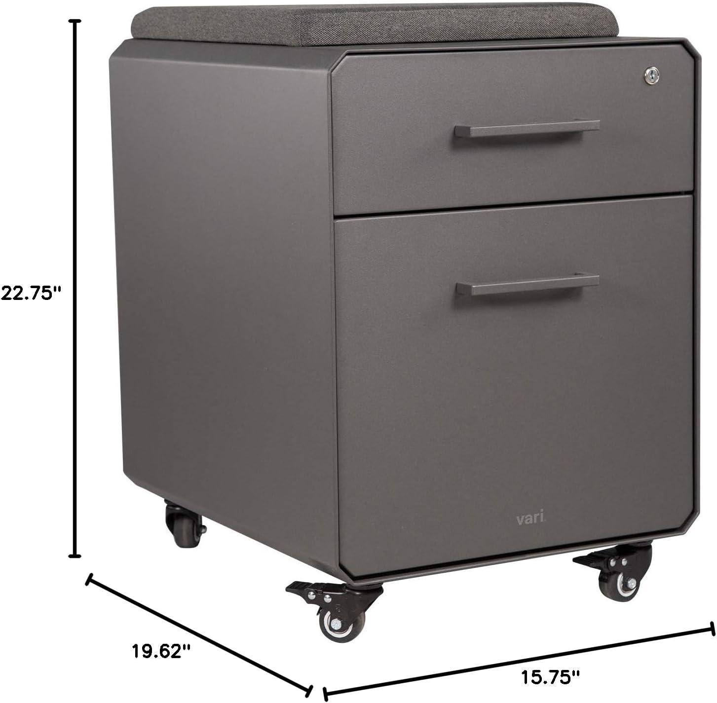 Vari Storage Seat – 2 Drawer Mobile Filing Cabinet for Under Desk Storage – Removable Seat Top – for Home or Office – Lockable Drawers with Heavy-Duty Steel and Roll & Lock Casters – Charcoal Grey