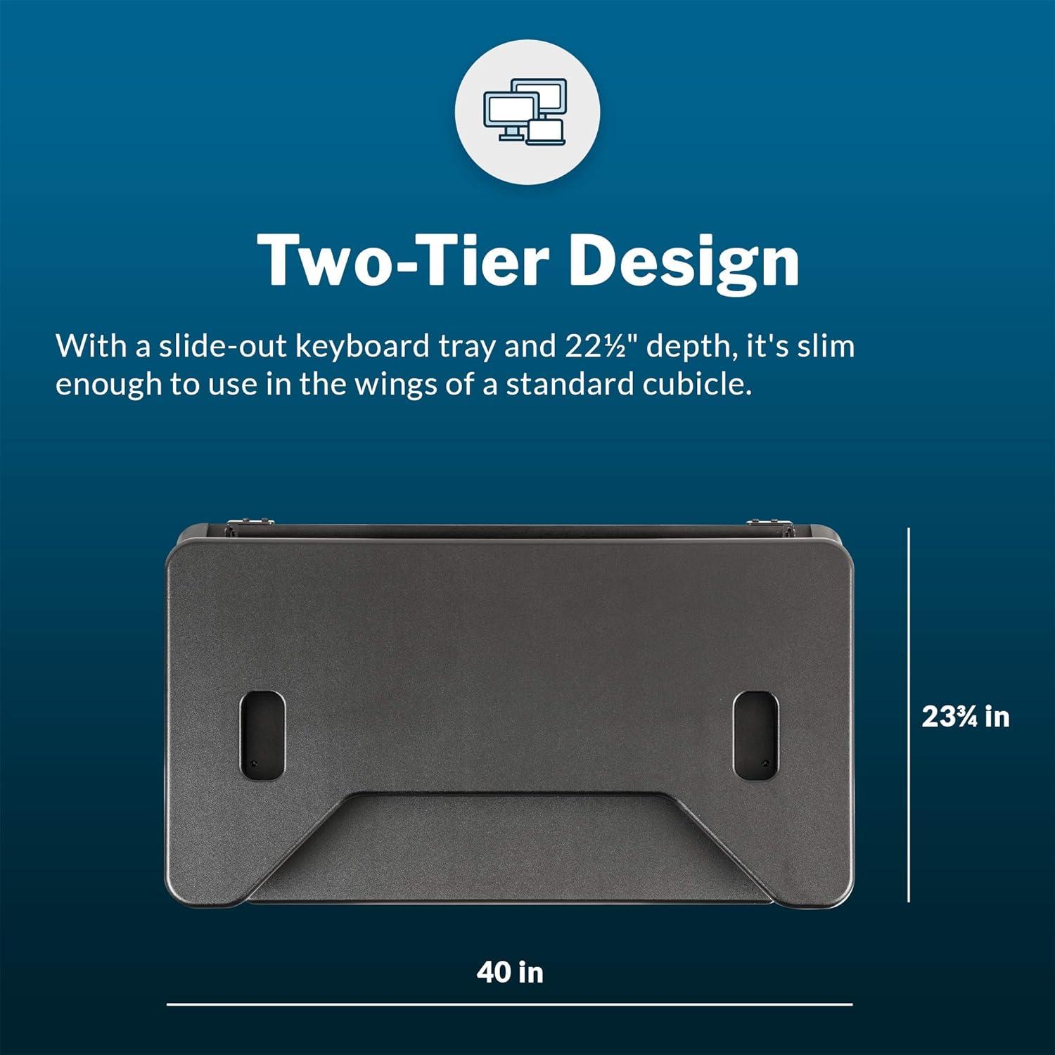 Get a free gift with your purchase of Vari VariDesk Cube Plus 40 - Two-Tier Cubicle Standing Desk Converter for Dual Monitors - Adjustable Height with Spring Assisted Lift and Dual Handles - Home Office Use - Fully Assembled, Black(Black). Limited quantities available!