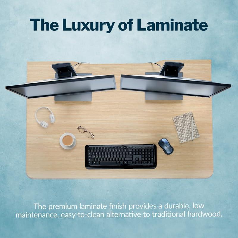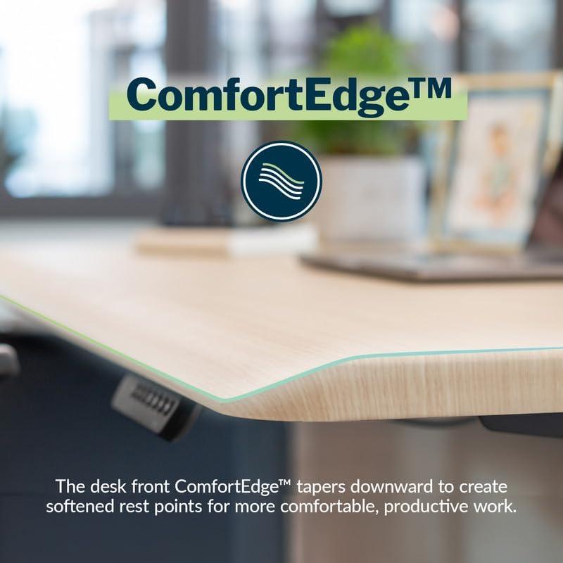 Vari ComfortEdge Electric Height Adjustable Standing Desk – 40×26 Varidesk Sit-Stand Desk for Home Office, Sloped Ergonomic Front Edge, Stable Legs, Easy Assembly, 2 Boxes – Walnut Top/White Legs(Light Wood Top / Slate Legs)