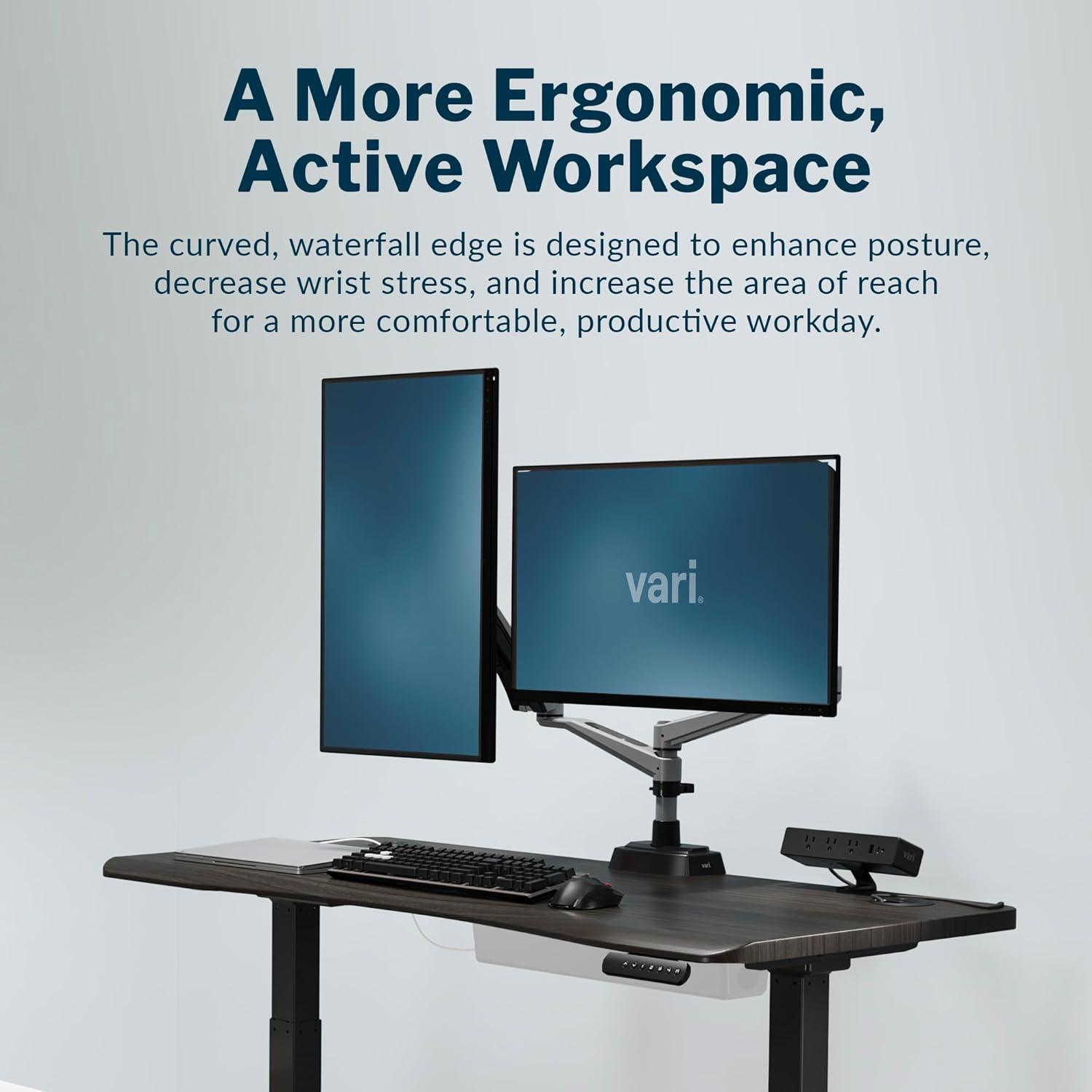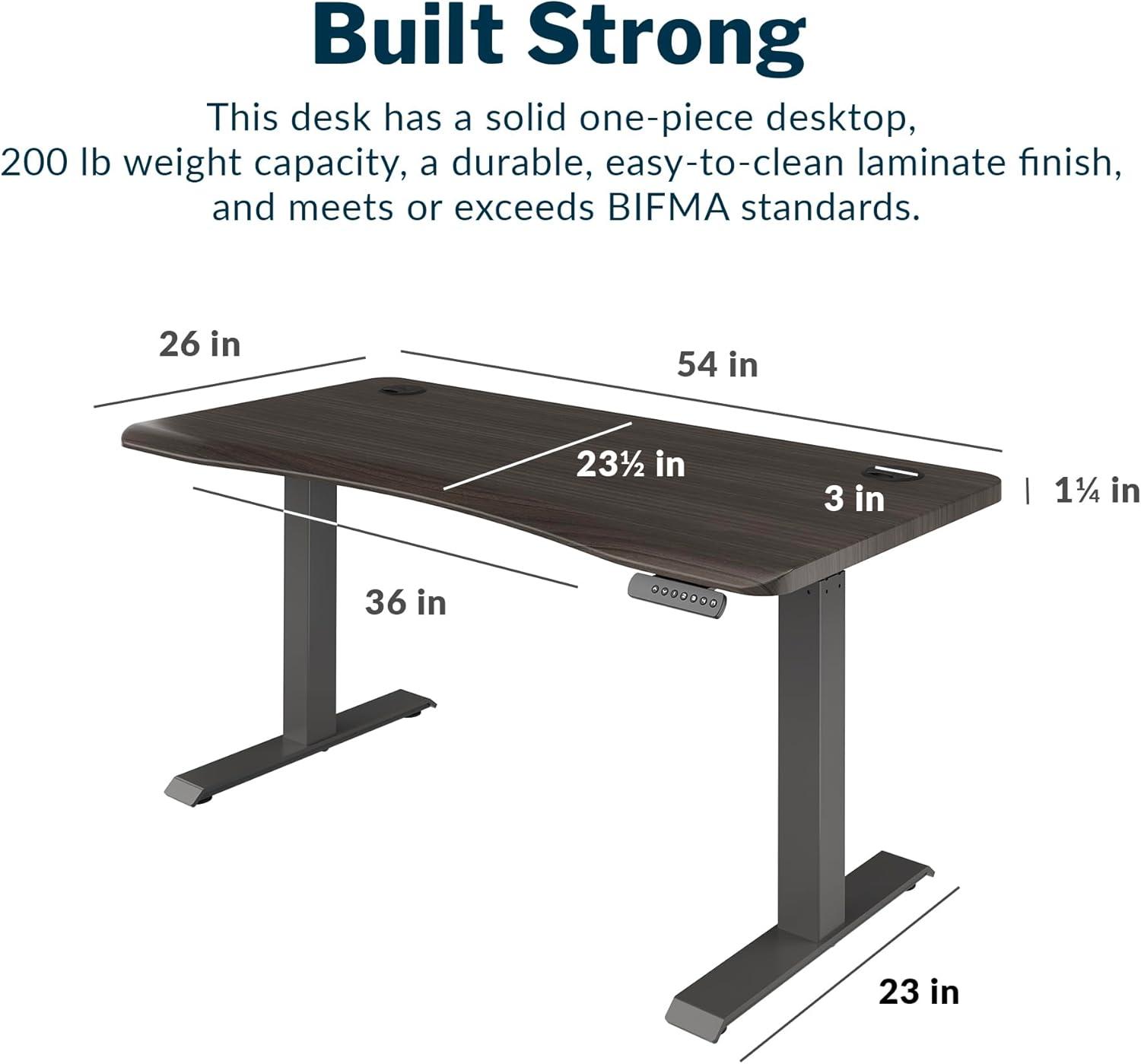 Vari Ergo 54×26 Electric Standing Desk – Height Adjustable Sit Stand VariDesk + Curved Waterfall Edge, 4 Memory Settings, Quick Assembly, Cable Management, 200 lb Capacity – Light Wood (2 Boxes)(Espresso Wood / Slate)