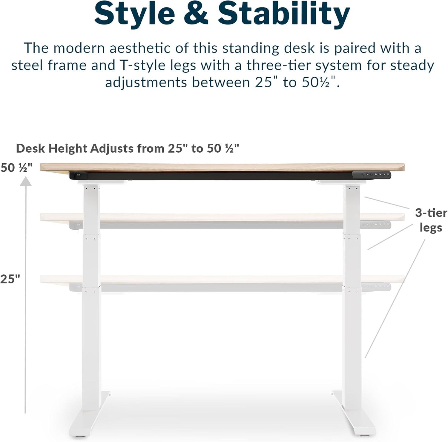 Customizable Height Control: Easily switch from sitting to standing with quiet electric lift and 4 programmable memory settings. Height range suits users from petite to tall (25”–50.5”).