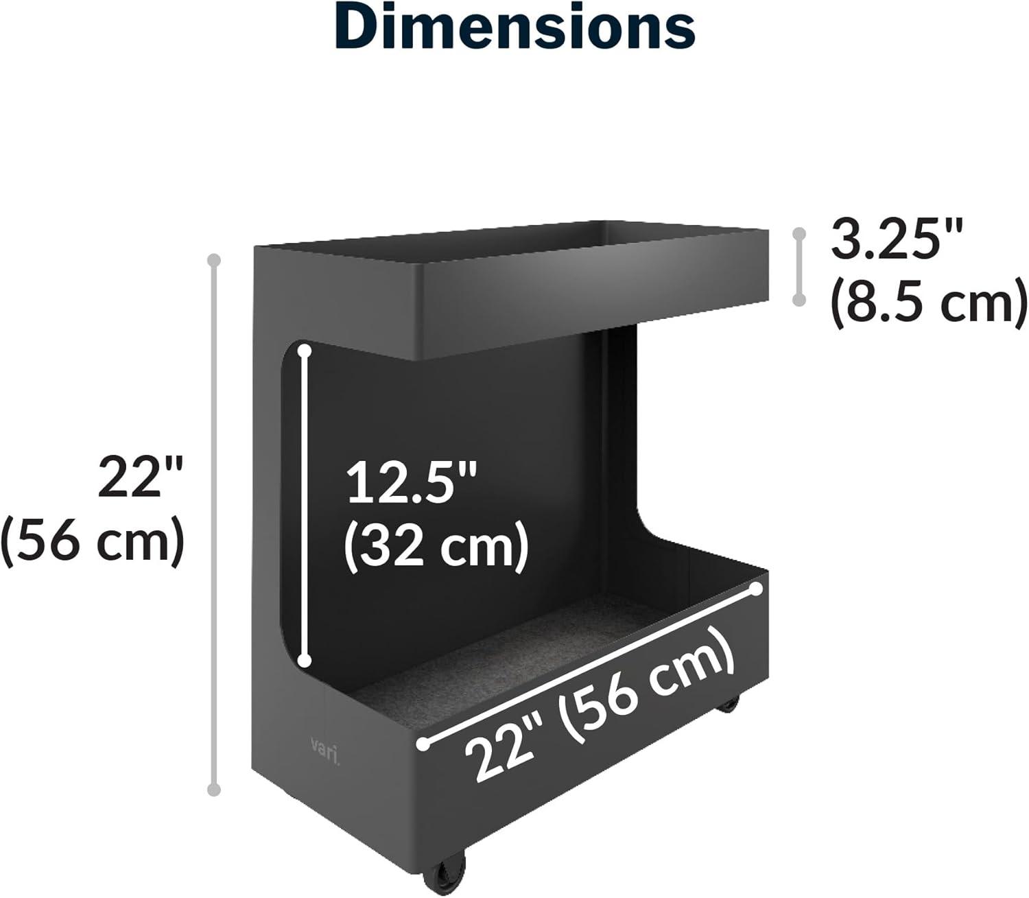 Vari Mobile Slim Under-Desk Cubby – Durable Steel & PET Felt Line – Open Storage & Easily Rolls – Dual Tier Office and Home Organizer Accessory – Black, 10” x 22” x 22”