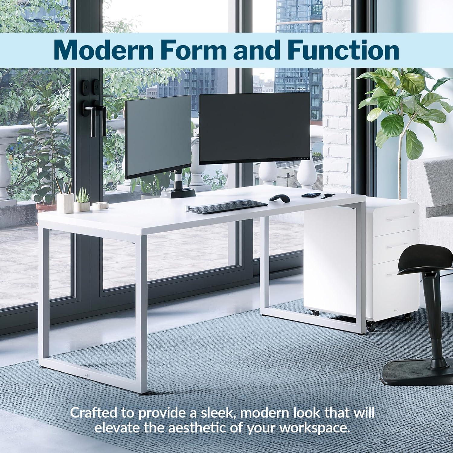 Vari Table 60×24 – Modern Computer Desk with Durable Laminate Finish and Slim Legs – Ideal for Gaming, Home, or Office – Stand-Alone Workstation or Corner Side Table – Reclaimed Wood(White)